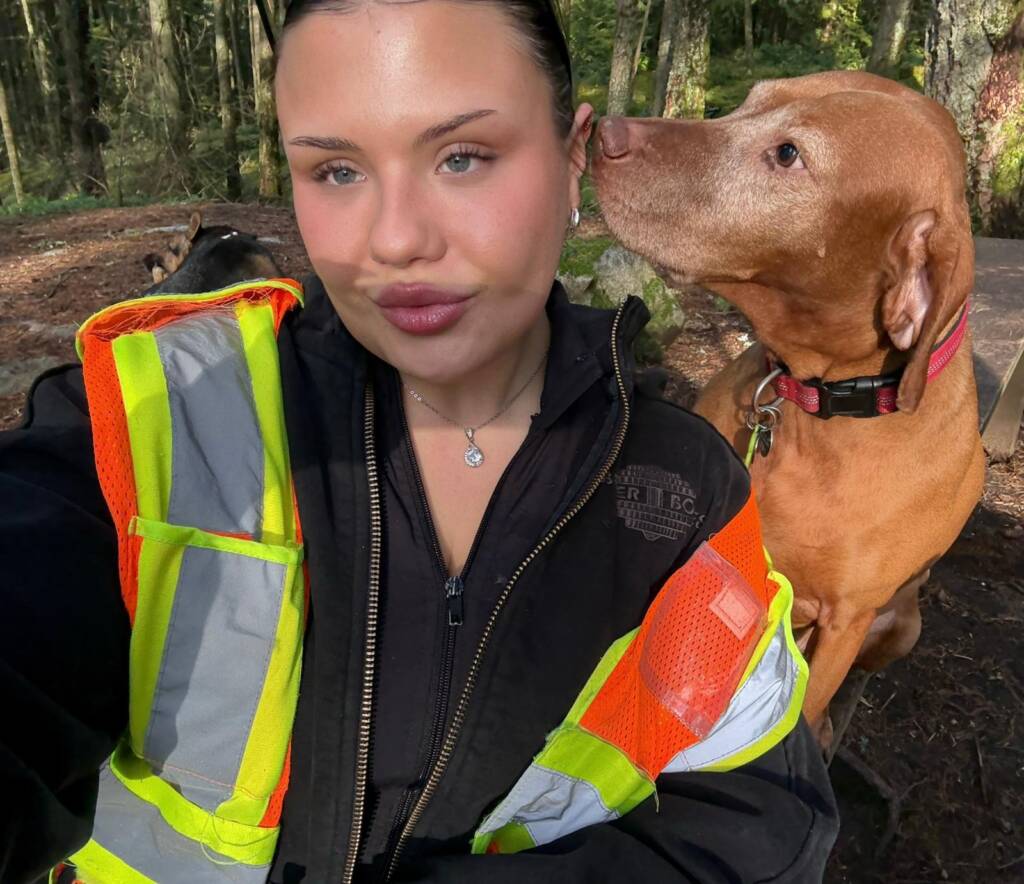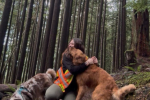Meet Selina! She lives in Central Vancouver with her cat Prairie and spends most of her days looking for ways to be active or get outside- swimming, hiking, biking, hitting the gym, etc., even after a day of hiking with the dogs! She hikes dogs by day (Since April 2024) and moonlights as a floral designer on weekends for big events & weddings! Selina’s childhood dog was a Husky/Lab mix named Angel, but her favourite breed of dog is a Vizsla!